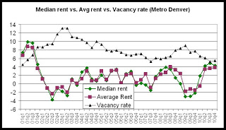 In a market the size of Denver, however, there are not many periods in which changes in average rents are heavily skewed from the median rent level.