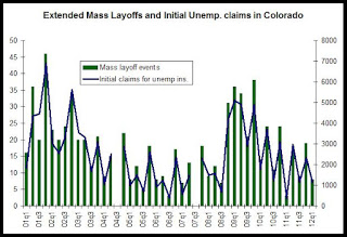 Extended mass layoffs were up 166 percent percent in Colorado from the first quarter of 2011, rising from 3 events to 8 events over the year.