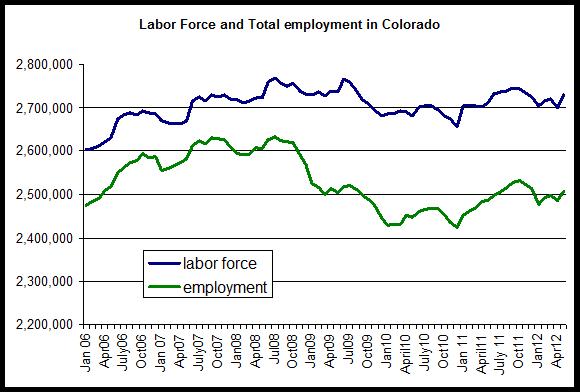 Colorado gained 21,000 jobs in May 2012 compared to May of 2011,