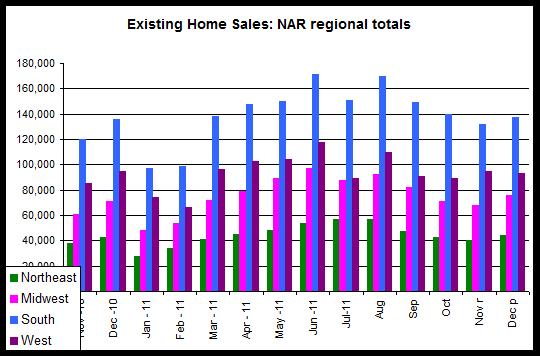 The report, which monitors sales activity for newly constructed houses, reported that in the West, new home sales were down 42 percent year over year, with 4,000 sales in December 2011, which was the lowest December total recorded in more than ten years. There were 7,000 sales during December 2010. Nationwide, sales fell 8.6 percent, falling from 23,000 to 21,000 during the same period.