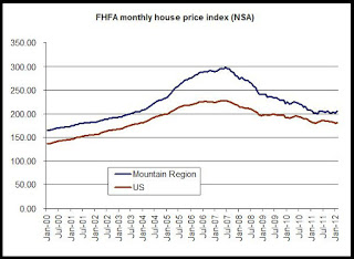 Zillow home valuations, known as the median "Zestimate valuation" should be taken with a grain of salt, but in this case they do appear to be in line with other home price indices and trends. The metro trends presented here match up well with the metro trends provided by FHFA's quarterly reports on home prices in Colorado.
